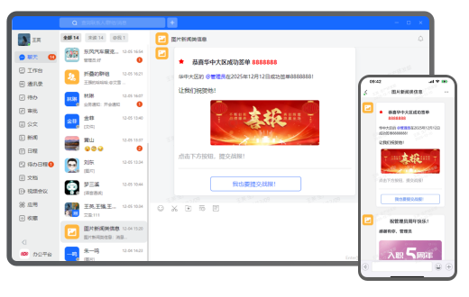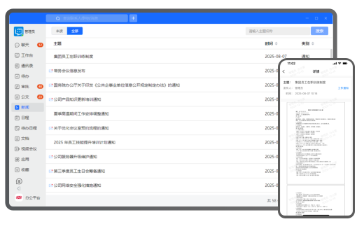 以轻量化操作承载专业化办公能力,实现消息、任务、流程、数据的集中管控与高效流转。