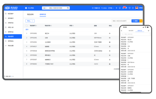 实现办公用品采购申请、入库登记、线上领用、库存管控全流程数字化,支持库存低于阈值自动推送补货提醒,记录每笔领用的人员、时间、用途与数量,生成部门、人员消耗统计报表,优化采购计划与成本控制。