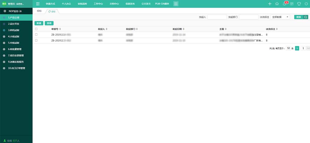 用于跟踪和管理研发项目的进度,包括产品立项、设计开发、样机试制、小批试制、中批试制、转批量管理等功能。此外,还包括NDP监控-冰箱、NDP监控-洗衣机(可查看NDP模块发起的所有冰箱、洗衣机流程),确保研发流程的透明度和效率。