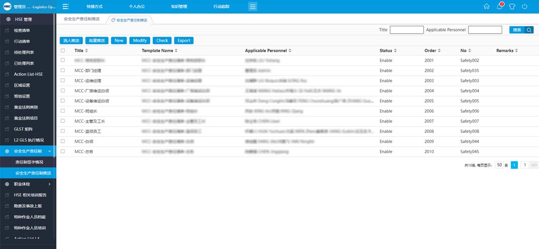 安全生产责任制:允许创建数据和绑定模板,支持批量创建审批单进行审批签字。用户可以批量推送审批单,也可以选择特定数据选择人员推送。这有助于提高审批流程的效率,确保安全生产责任制的执行和监督。通过这种方式,企业可以确保所有相关人员都清楚自己的安全责任,并且能够及时履行这些责任。